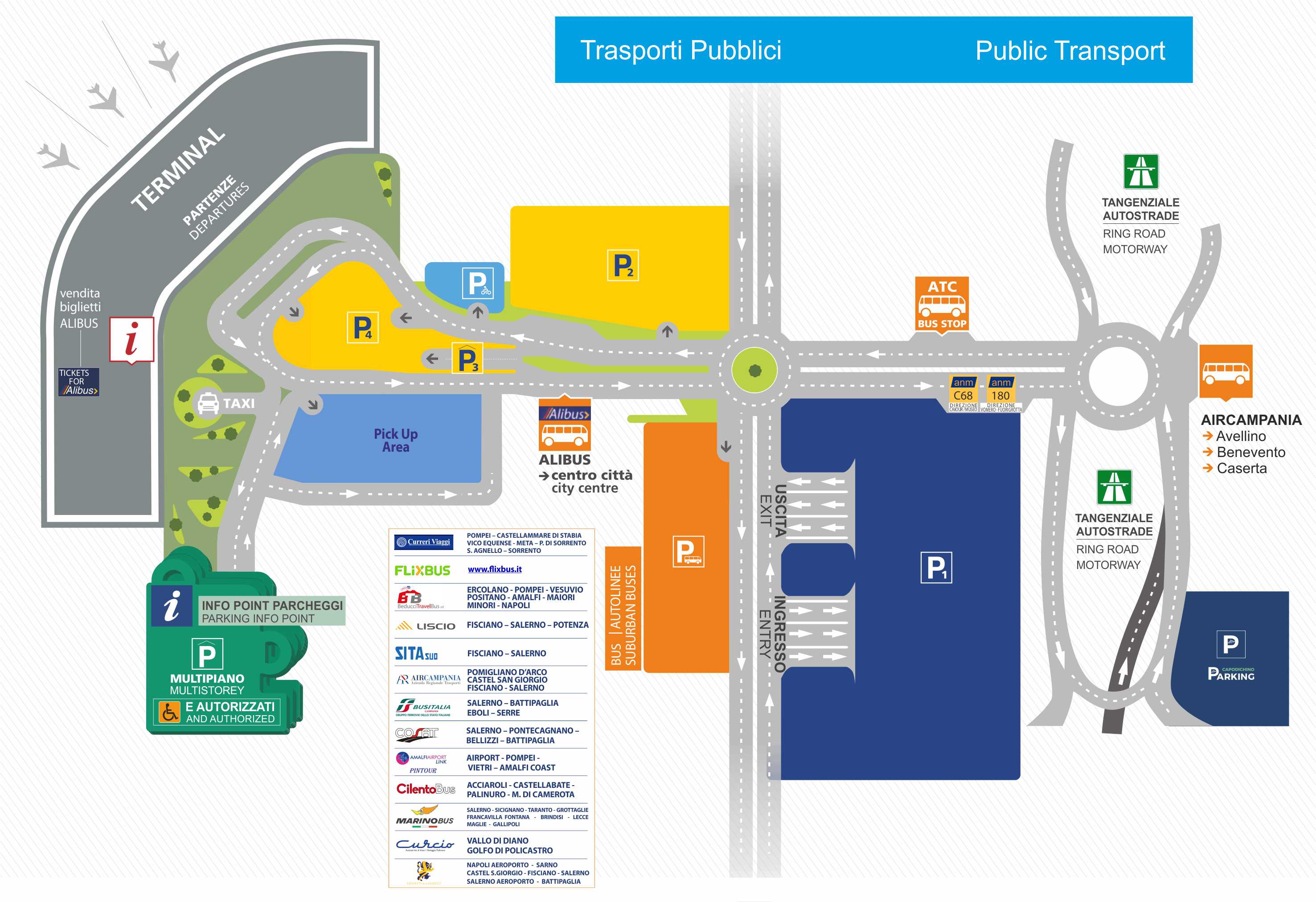 Dall’aeroporto di Napoli la linea Alibus effettua le fermate di Piazza Garibaldi (Stazione Centrale)-Immacolatella/Porta di Massa (interno Porto- terminal Traghetti per le Isole) e Molo Angioino/Beverello (terminal croceristico Stazione Marittima e Aliscafi).